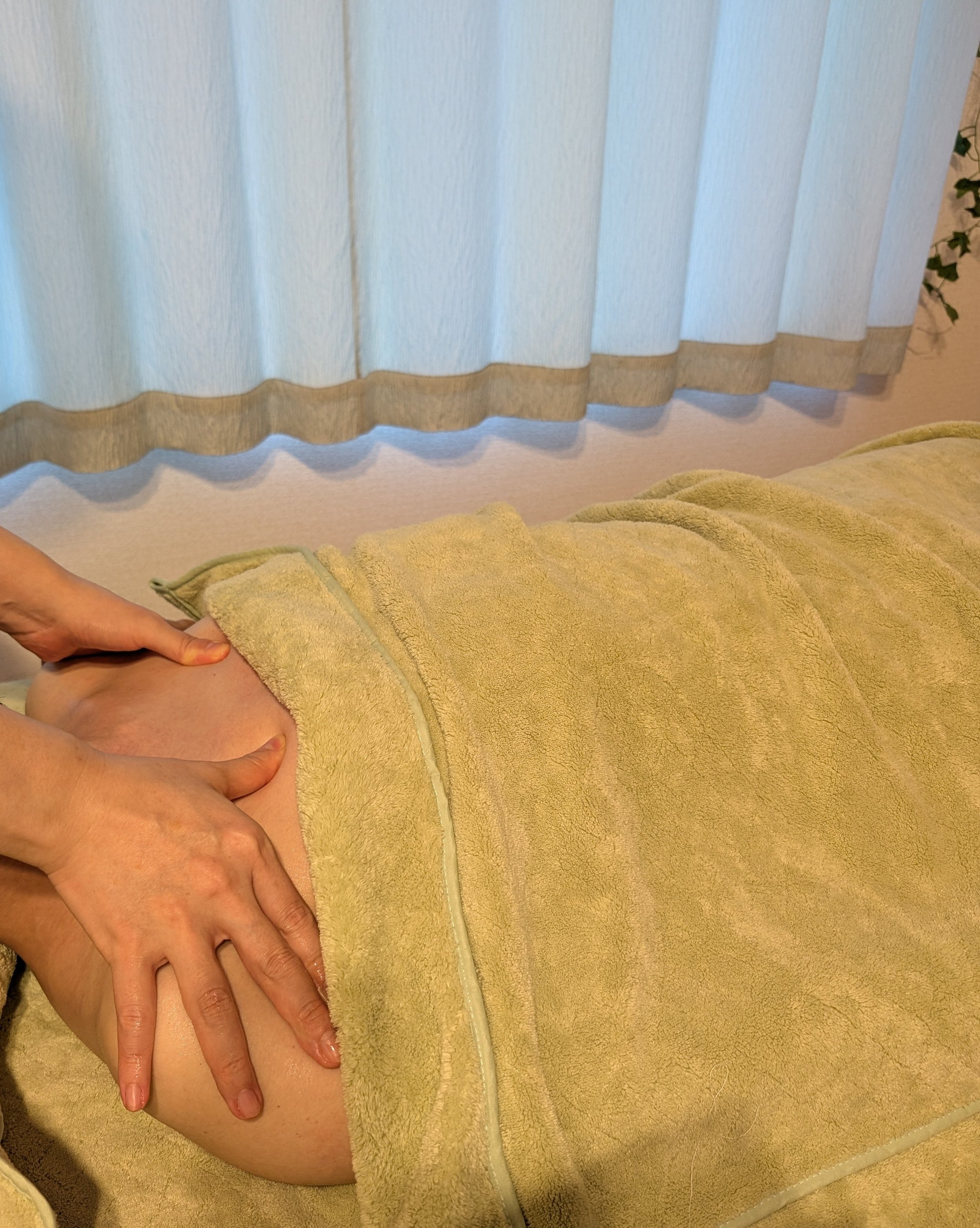 当サロンはオイルを使用する筋膜リリースなどの施術がベースですが、お身体の状態や、症状、ご希望に応じて、タオル上からのもみほぐしなども行います。